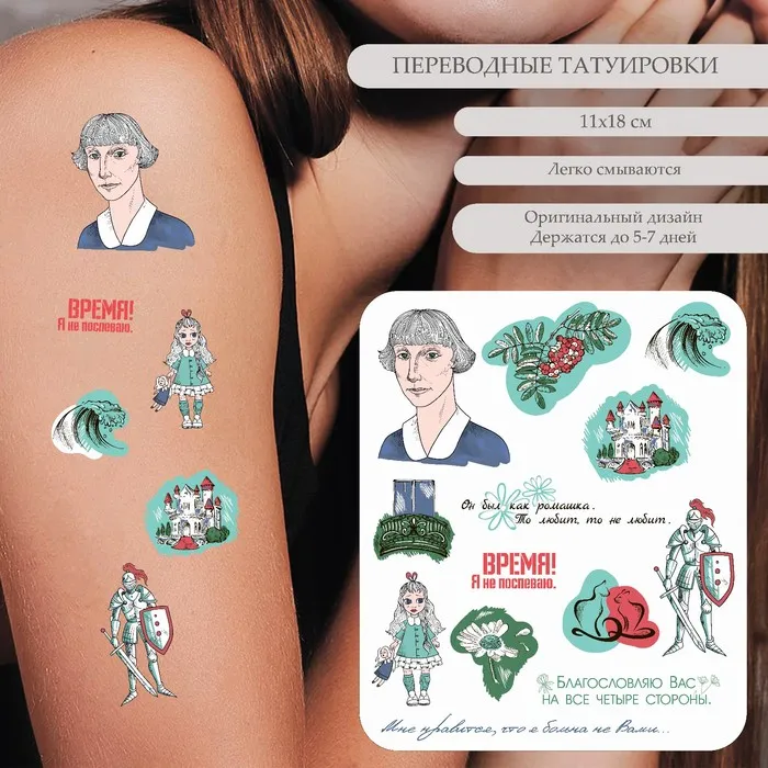 Переводные тату цветные «М.И. Цветаева: Время! Я не поспеваю» 18×11 см — Характеристики