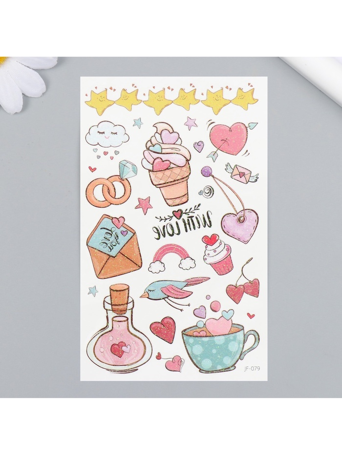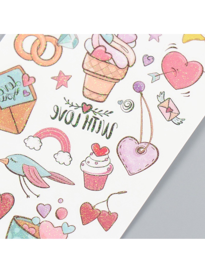 Переводные тату цветные «Письмо любви», временные татуировки с блёстками, 12×7.5 см — Характеристики
