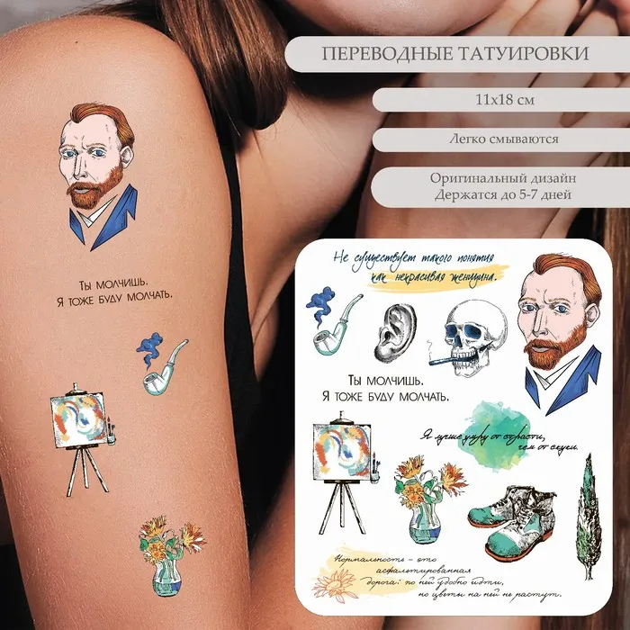 Переводные тату цветные «Ван Гог: Ты молчишь. Я тоже буду молчать», 18×11 см — Характеристики