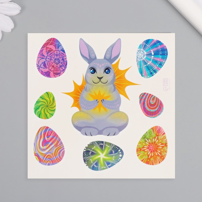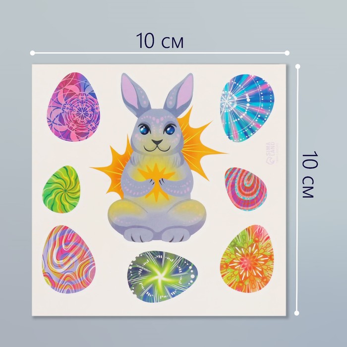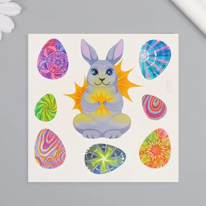 Представляем яркие цветные переводные татуировки, которые станут идеальным выбором для создания праздничного и игривого образа. Их дизайн вдохновлён очаровательным зайцем и пасхальными яичками, что создаёт атмосферу весеннего волшебства и радости. Размер 10×10 см позволяет создать заметный акцент, который украсит как детский праздник, так и семейное торжество.