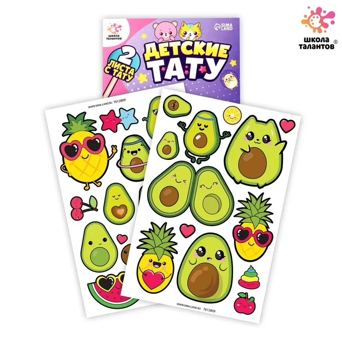 Переводные татуировки детские «Авокадо», 2 листа тату — Характеристики