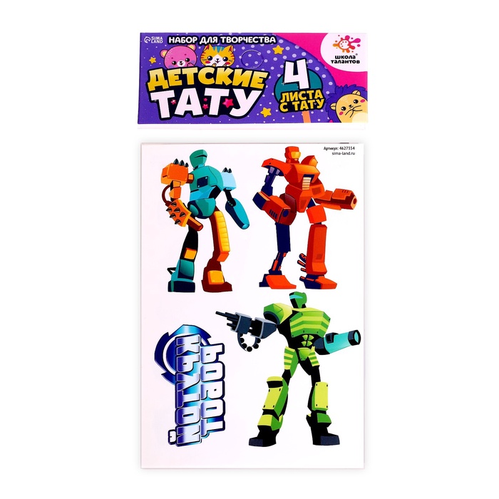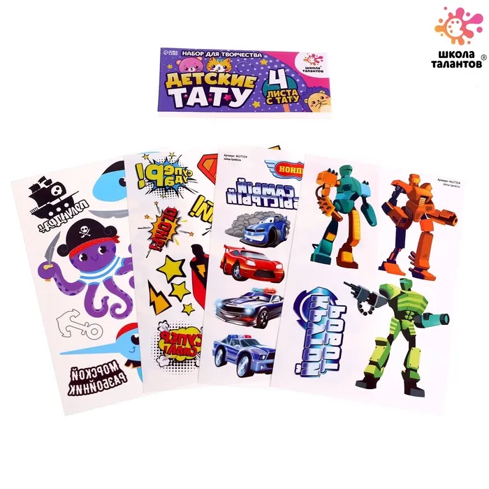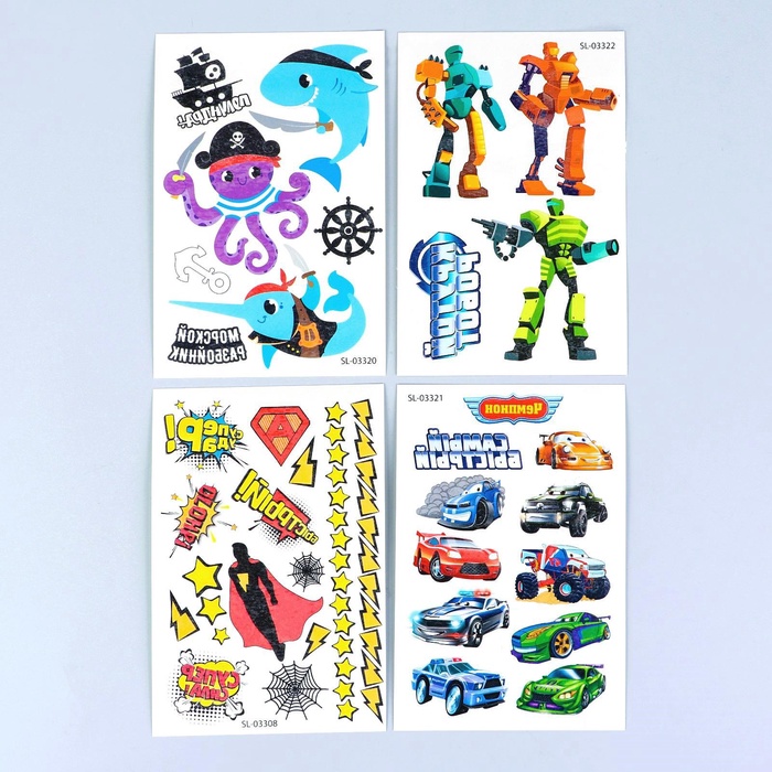Переводные татуировки детские «Для мальчиков», тату — 4 листа — Характеристики