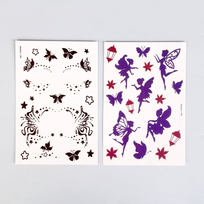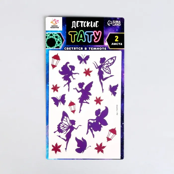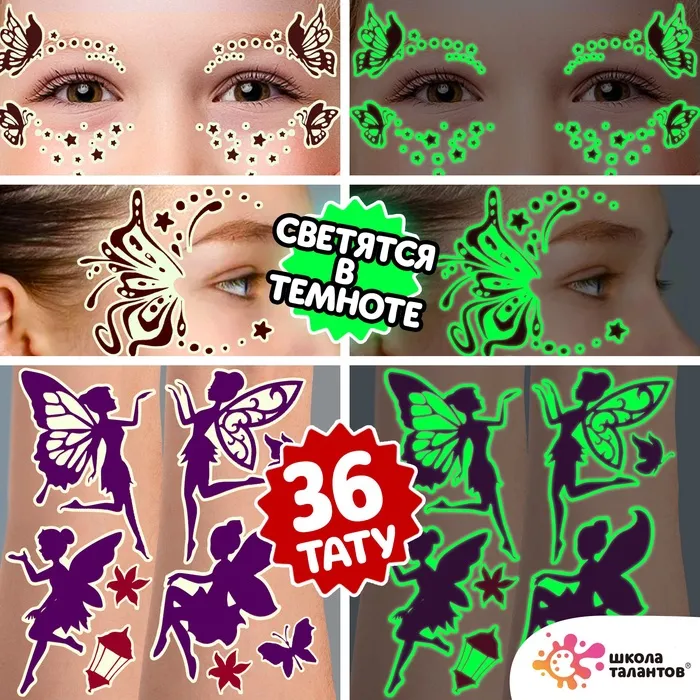 Переводные татуировки детские «Фея», светятся в темноте, тату — 2 листа — Характеристики