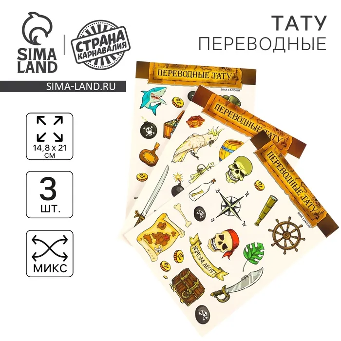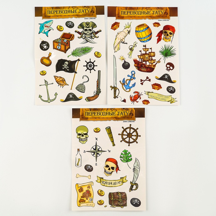 Переводные татуировки детские «Гроза морей», 3 листа — Характеристики