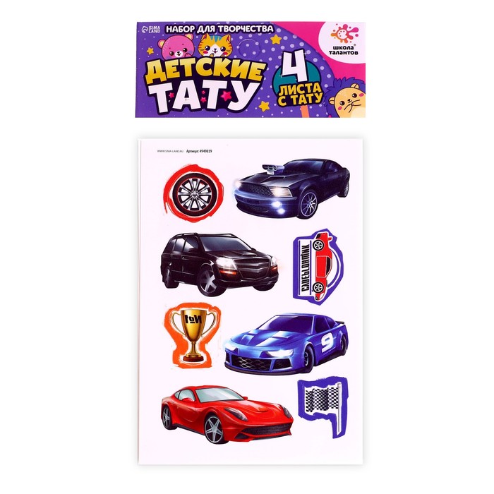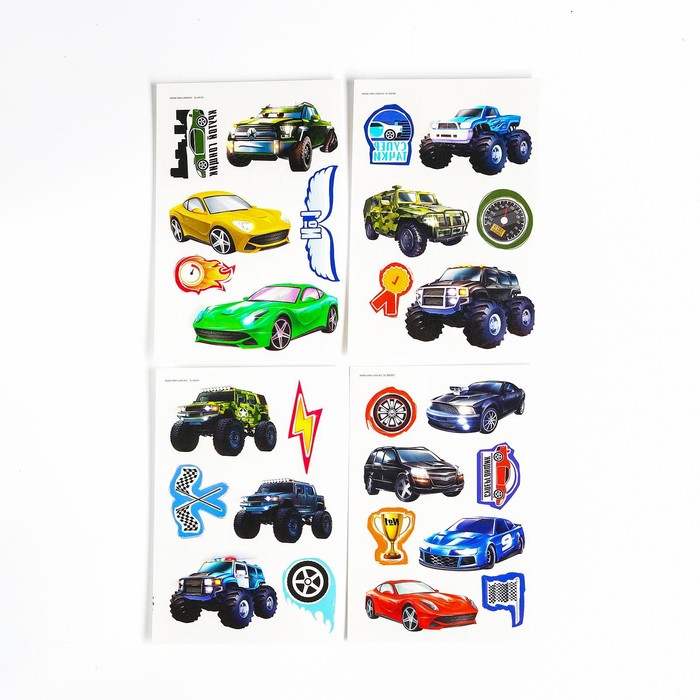 Переводные татуировки детские «Машинки», на тело, 4 листа — Характеристики