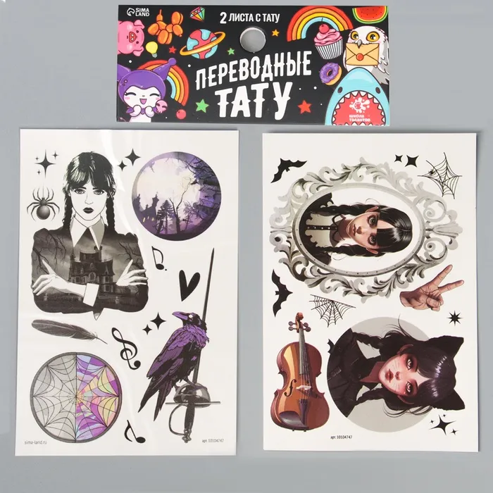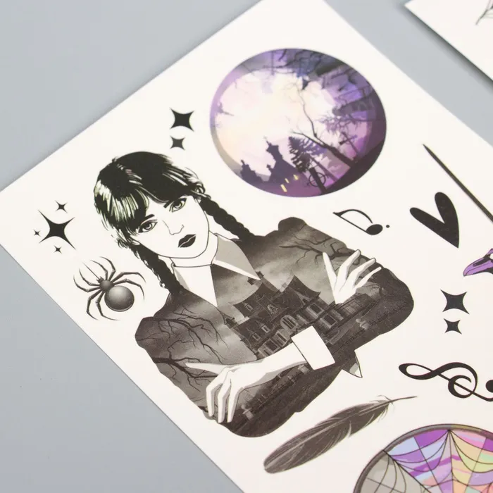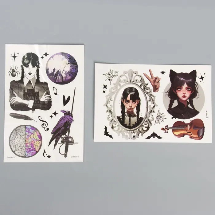 Переводные татуировки детские на хэллоуин «Мрачная история», 2 листа, тату — 23 шт. — Характеристики