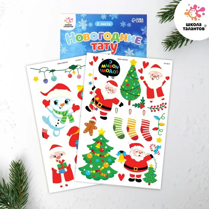 Переводные татуировки детские «Новогодние тату», 2 листа — Характеристики