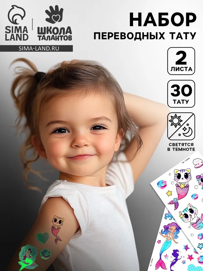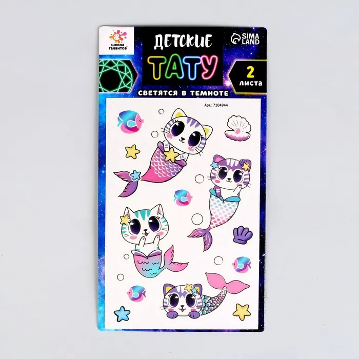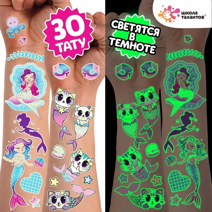 Переводные татуировки детские «Русалки», светятся в темноте, тату — 2 листа — Характеристики