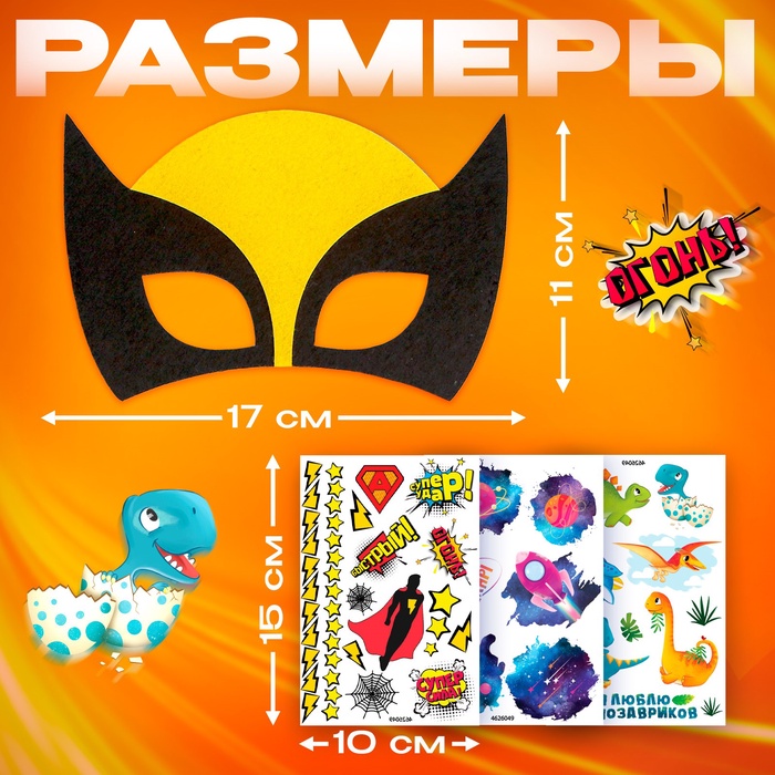 Переводные татуировки детские «Супергерой», с маской супергероя, тату — 23 шт. — Характеристики