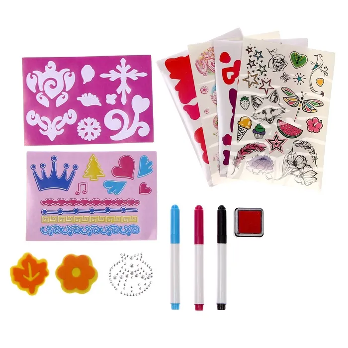 Переводные татуировки детские своими руками и раскраски-наклейки «Юная принцесса», набор для творчества — Характеристики
