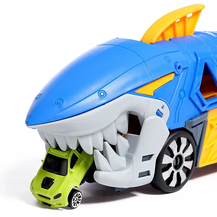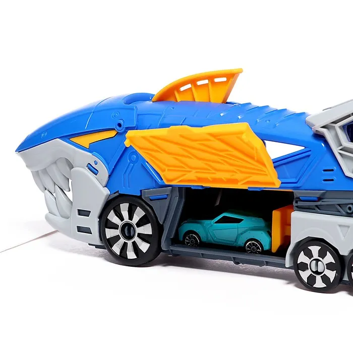 Парковка SHARK — игровой комплекс в форме хищной рыбы. Акула-автовоз покорит детей своим оригинальным дизайном, а два маленьких автомобиля, которые можно запускать с катапульты или скатывать с горки, подарят массу ярких эмоций.