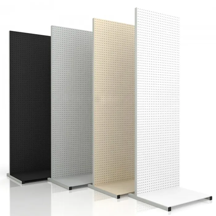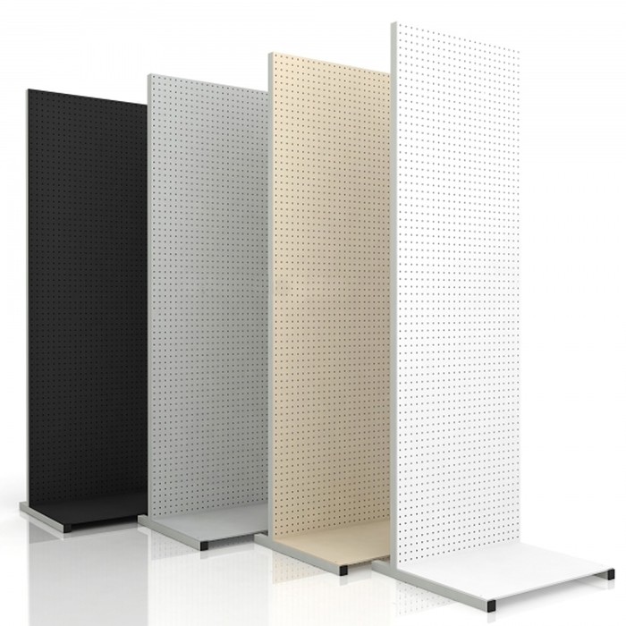 Панель с перфорацией сделана из ламинированного МДФ. Каркас — из стали. Ламинация выполнена в цвет с одной стороны.