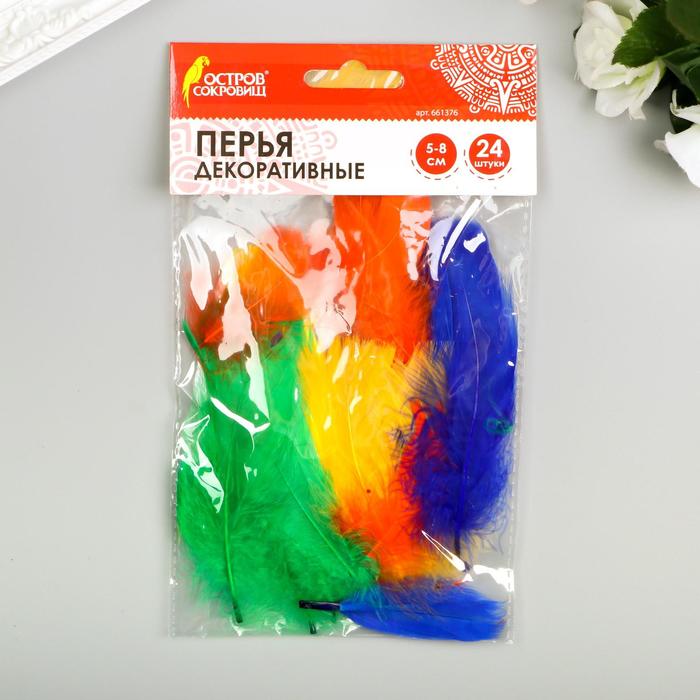 Перья декоративные "Карнавальные", 5-8 см (набор 24 шт) 6 цветов, яркие, ассорти