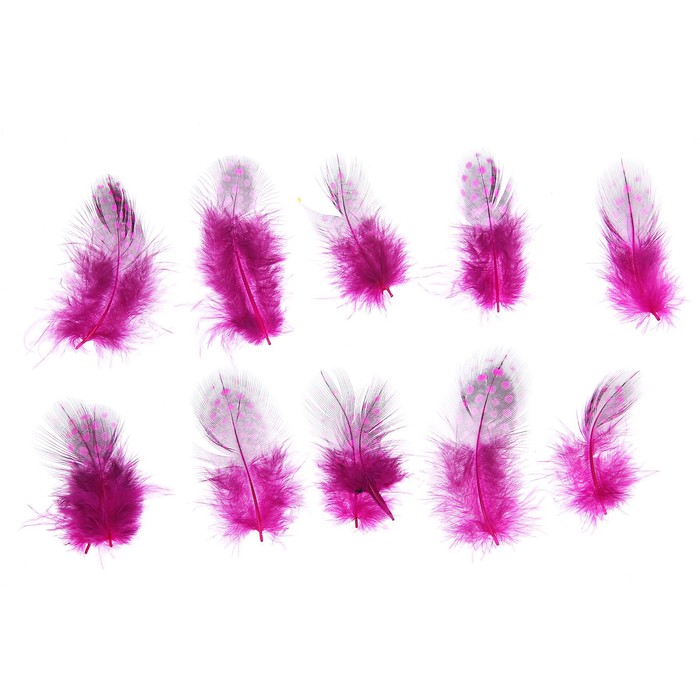 Набор перьев для декора 10 шт., размер 1 шт.: 5×2 см, розовый с чёрным