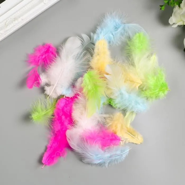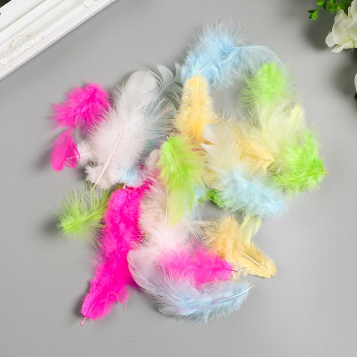 Перья декоративные «Карнавальные», 5-8 см, набор 24 шт., 6 цветов, пастель, ассорти