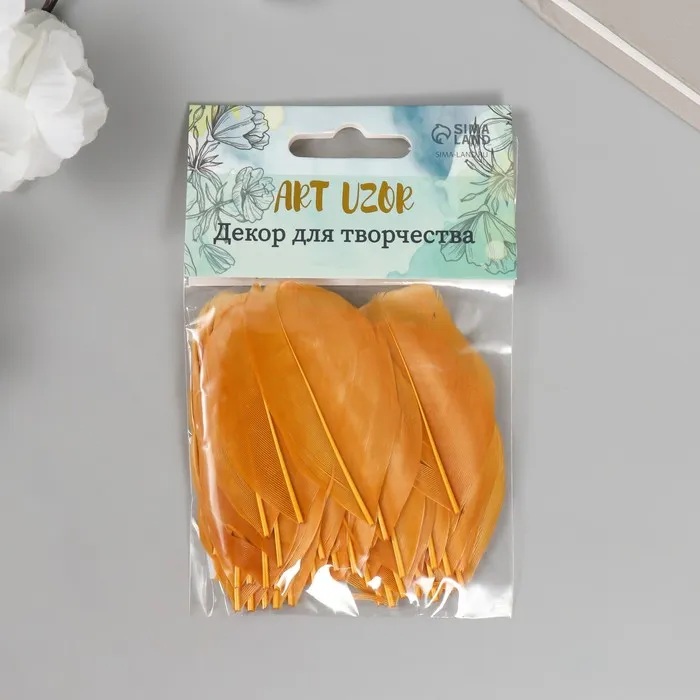 Набор перьев для декора 10 шт., размер 1 шт.: 5×2 см, жёлтый с коричневым