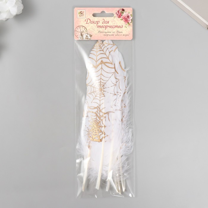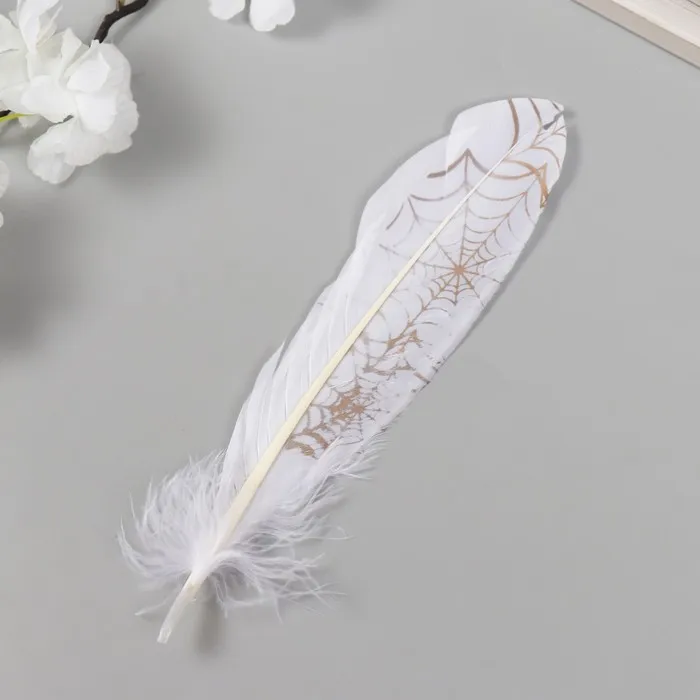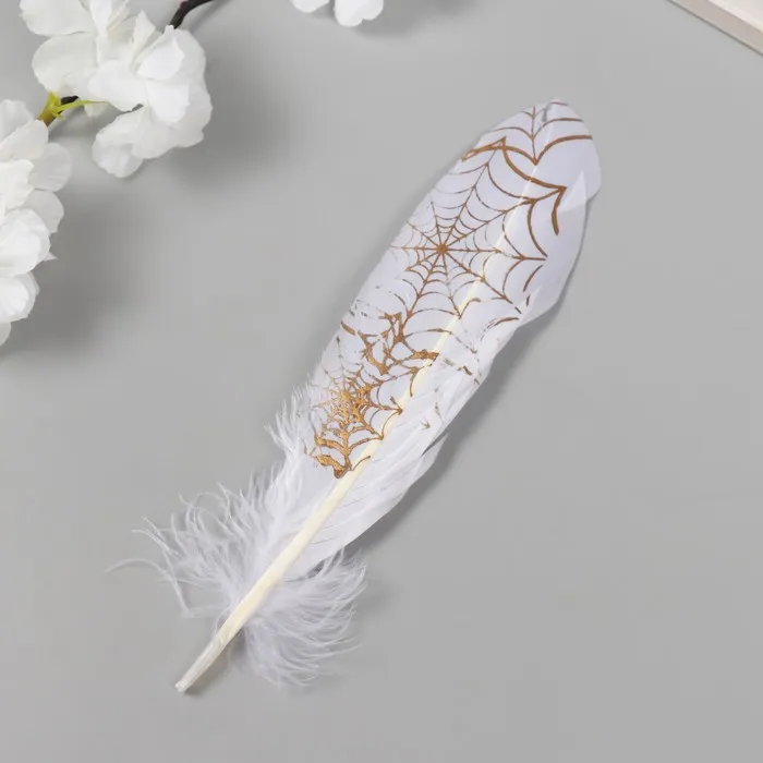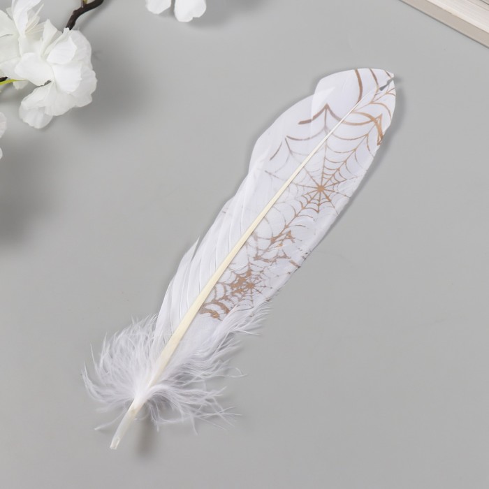 Перо декоративное гусиное "Паутина" белое с золотом h=15-20 см — Характеристики