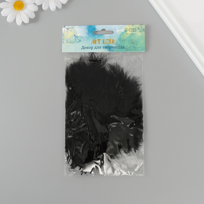 Перо декоративное гусиное пуховое "Чёрное" набор 100 шт h=10-15 см