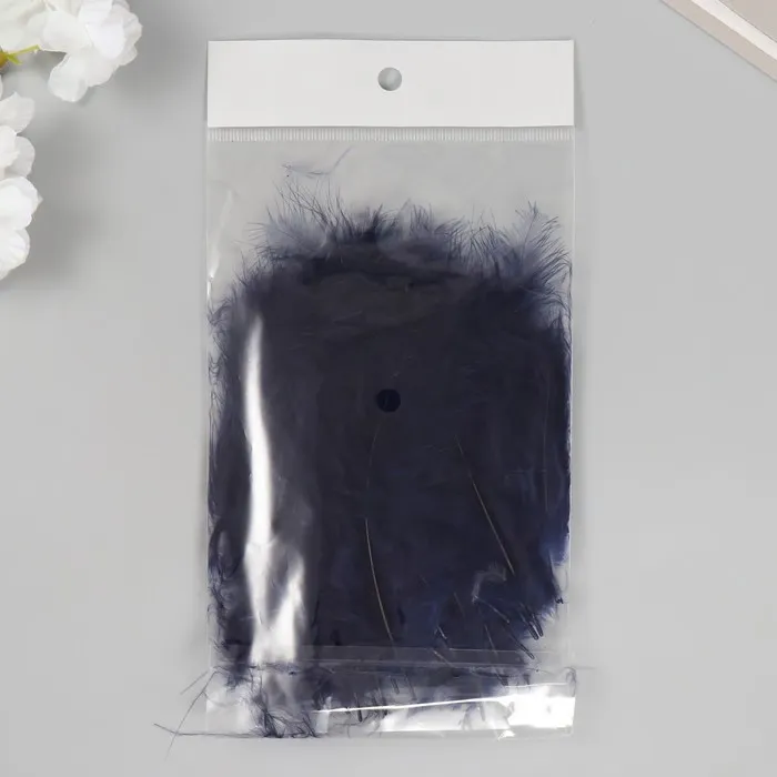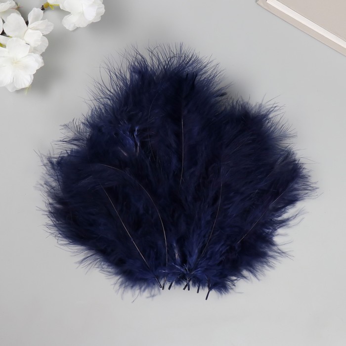Перо декоративное гусиное пуховое «Тёмно-синий», набор 40 шт. h=10-15 см