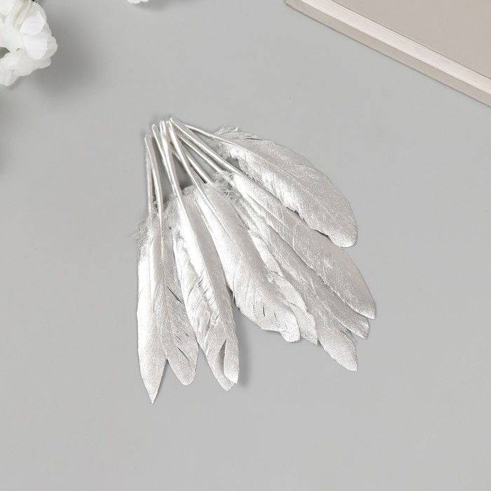 Перо декоративное гусиное двустороннее белое с серебром, h=10-15 см
