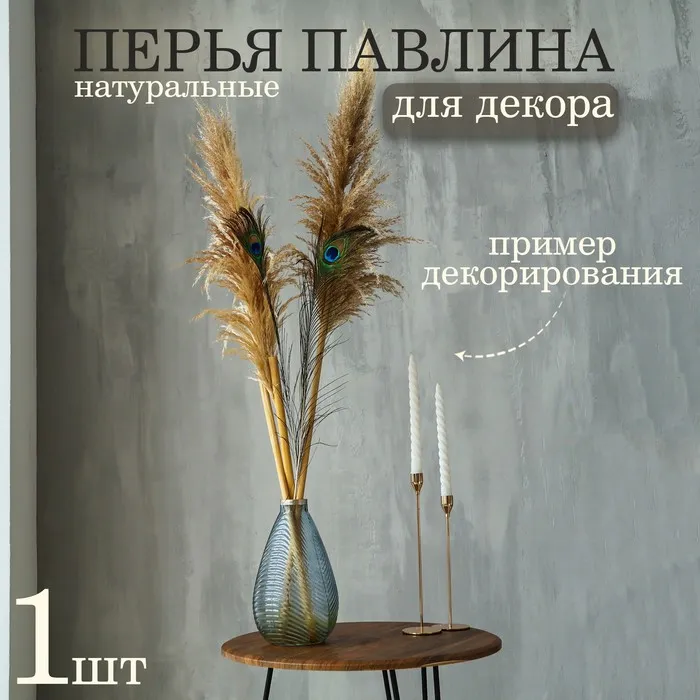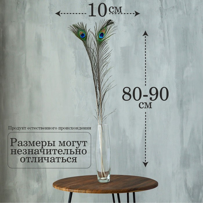 Перо павлина для декора 1 шт., размер — от 80 до 90 см — Характеристики