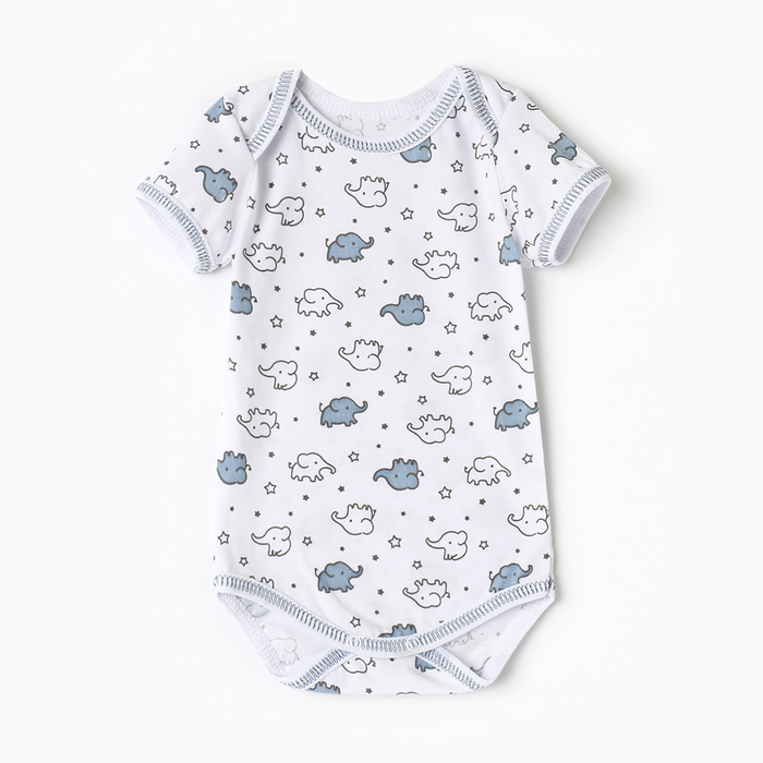 Боди детское с коротким рукавом, цвет белый/слоны, рост 68