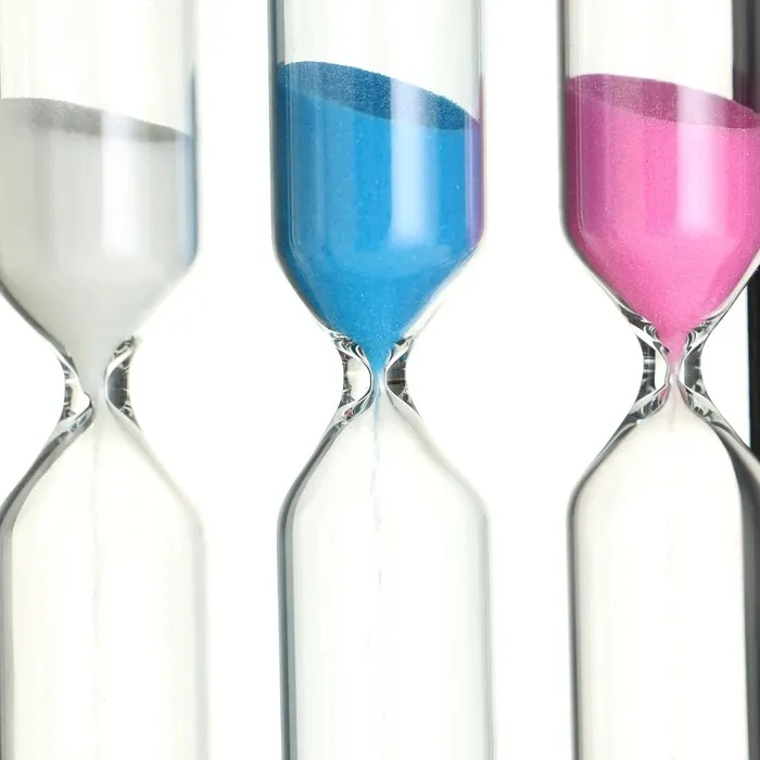 Разноцветные песочные часы – лучший способ декорировать интерьер комнаты или офиса. Изготовленные из стекла, дерева и декоративного цветного песка, эти часы подойдут под любой интерьер. Имеют временной цикл в 3,4 и 5 минут, прекрасно используются для отсчета времени в роли таймера, а также станут оригинальным и полезным атрибутом в виде сувенира. Отличный подарок любимой женщине, коллеге, маме и бабушке. Глядя на движение разноцветных песчинок вы постепенно будете чувствовать как проходит ваша тревога и стресс. Стилизованные песочные часы состоят из двух сосудов, соединённых узкой горловиной, один из которых частично заполнен песком.