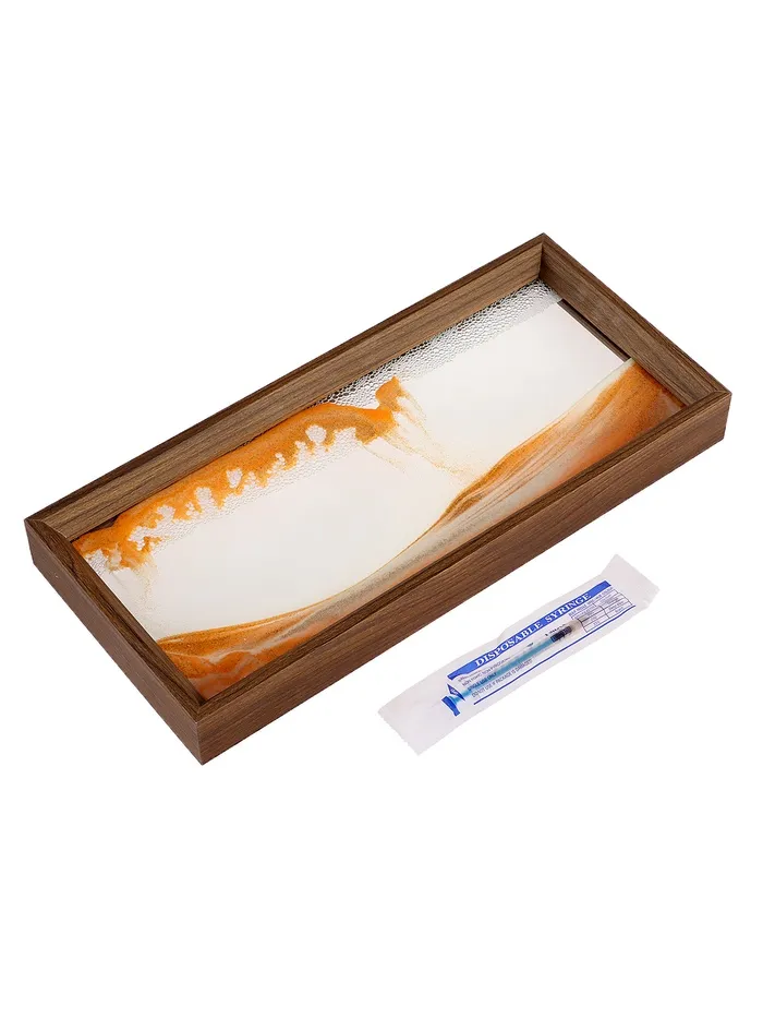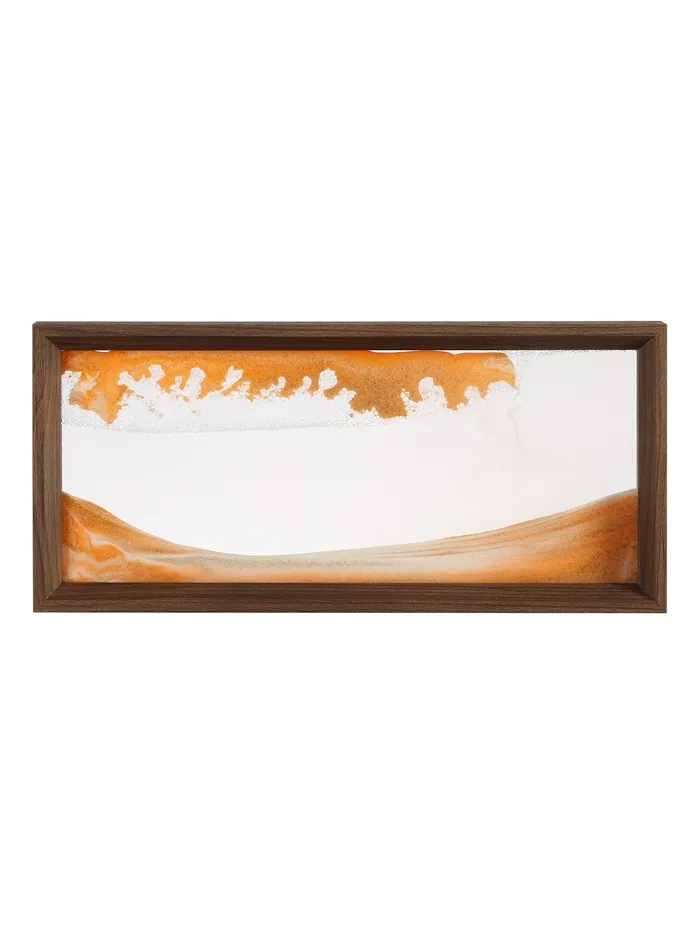Вы воздействуете одним прикосновением, когда рамка переворачивается, песок начинает произвольно струиться вниз, огибая пузырьки жидкости, образуя удивительной красоты пейзажи. Наблюдение за этим процессом позволяет человеку расслабиться, отдохнуть, успокоить нервы.