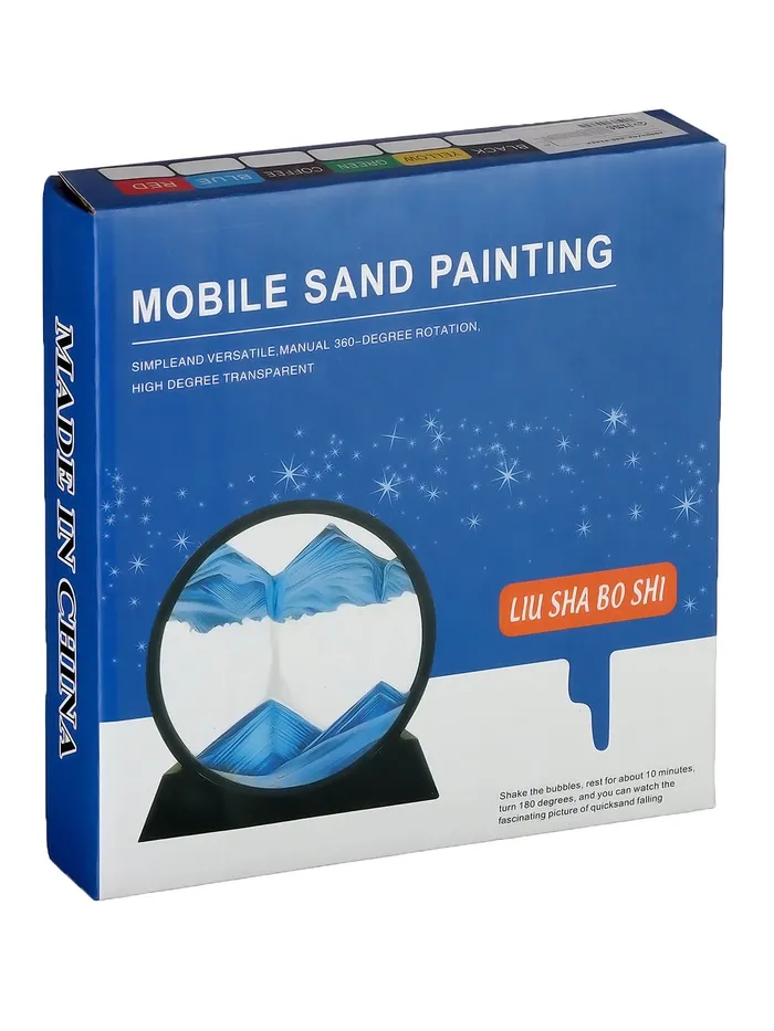 Вы воздействуете одним прикосновением, когда рамка переворачивается, песок начинает произвольно струиться вниз, огибая пузырьки жидкости, образуя удивительной красоты пейзажи. Наблюдение за этим процессом позволяет человеку расслабиться, отдохнуть, успокоить нервы.