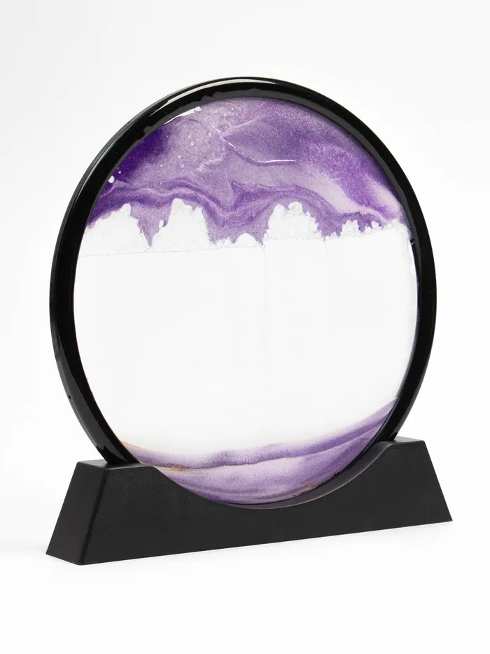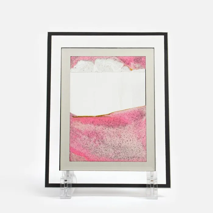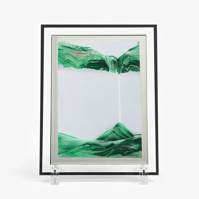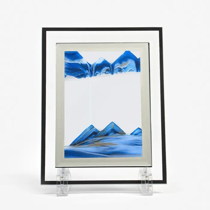 Вы воздействуете одним прикосновением, когда рамка переворачивается, песок начинает произвольно струиться вниз, огибая пузырьки жидкости, образуя удивительной красоты пейзажи. Наблюдение за этим процессом позволяет человеку расслабиться, отдохнуть, успокоить нервы.