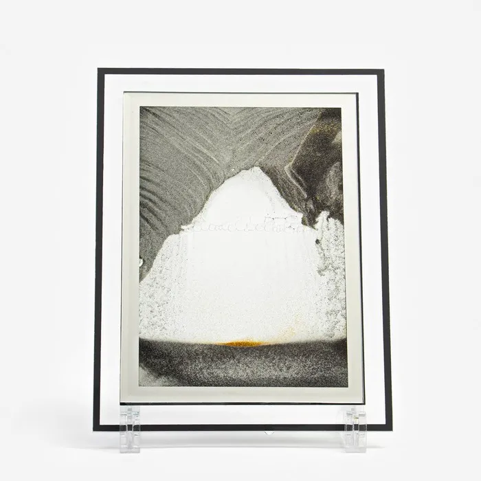 Картина с пересыпающимся песком создает спокойную и умиротворяющую атмосферу, которая помогает расслабиться наблюдая за движением песка и каплями воды.