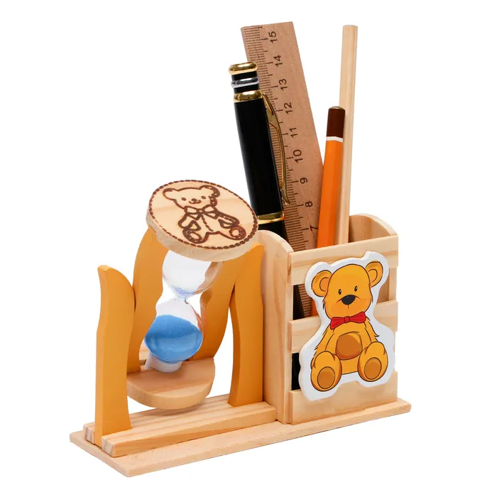 Песочные часы "Медвежонок", сувенирные, с карандашницей, 13.5 х 13.5 х 10 см, синие — Характеристики