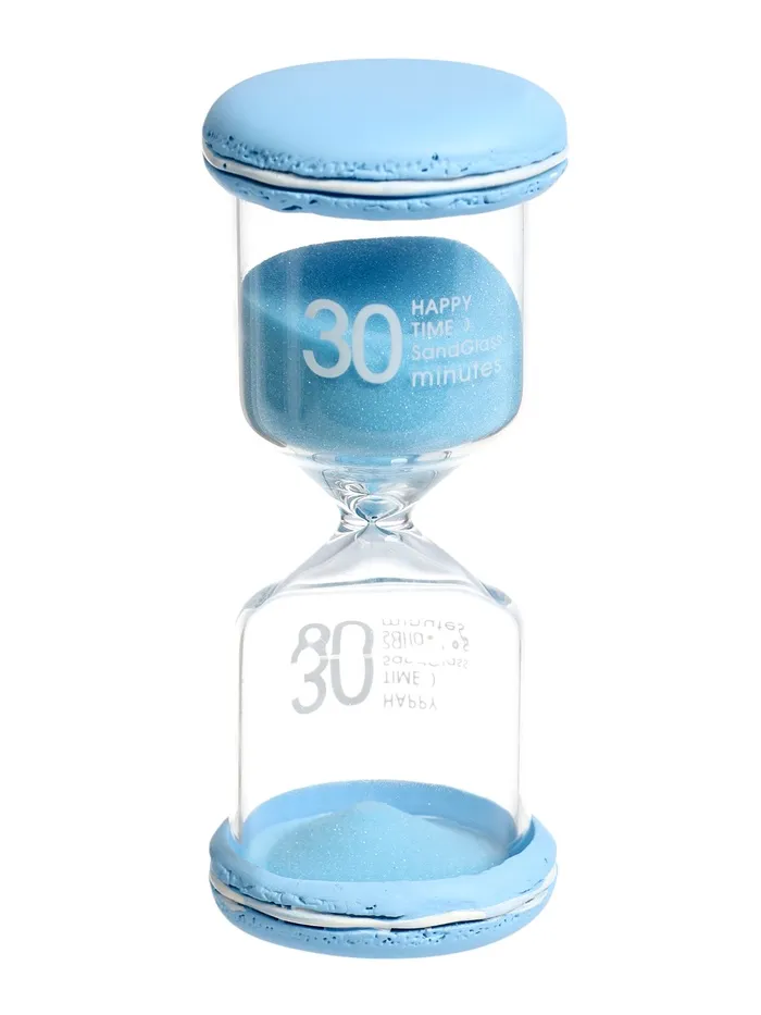 Превратите течение времени в изящный ритуал с этими голубыми песочными часами. Их небесный оттенок и плавные формы создают атмосферу спокойствия, а точный тридцатиминутный ход становится надежным помощником в повседневных делах.