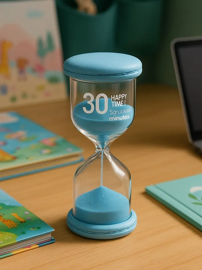 Компактный размер 4.4×9.8 см делает их идеальным аксессуаром для рабочего стола, кухни или творческого пространства. Прочный пластиковый корпус в форме изысканного макаруна надежно защищает внутренние колбы, сохраняя точность измерения времени.