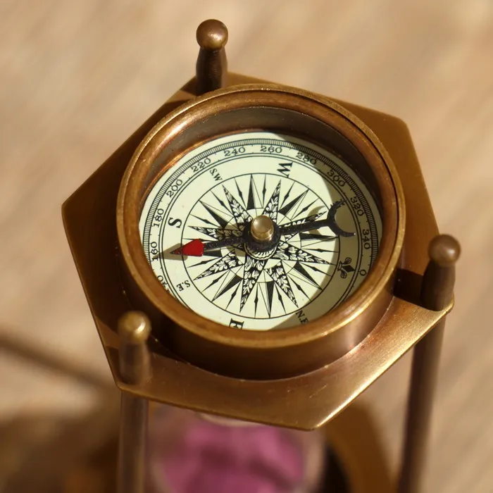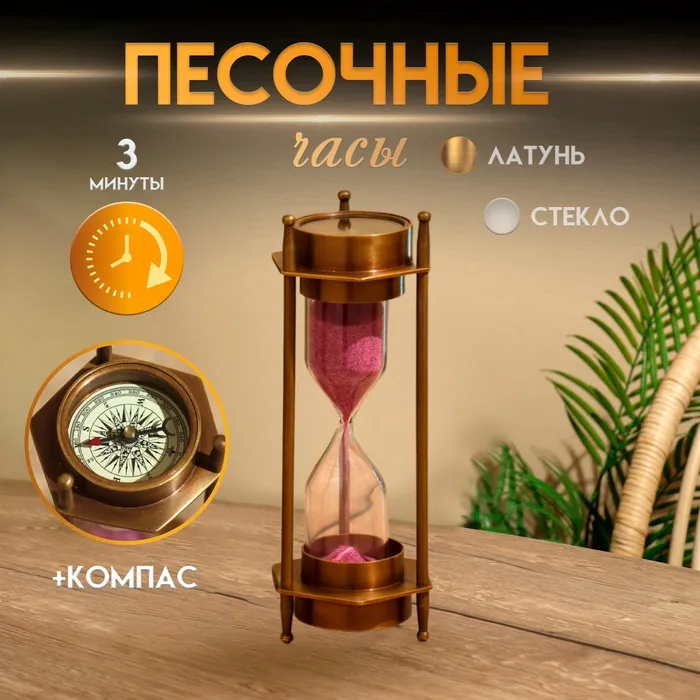 Песочные часы с компасом 14х5,5 см, латунь — Характеристики