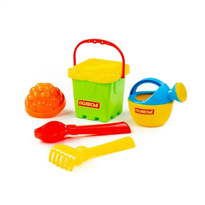 Песочный набор №169: ведро-крепость, ситечко-крепость, совок, грабельки, 1 формочка, лейка — Характеристики