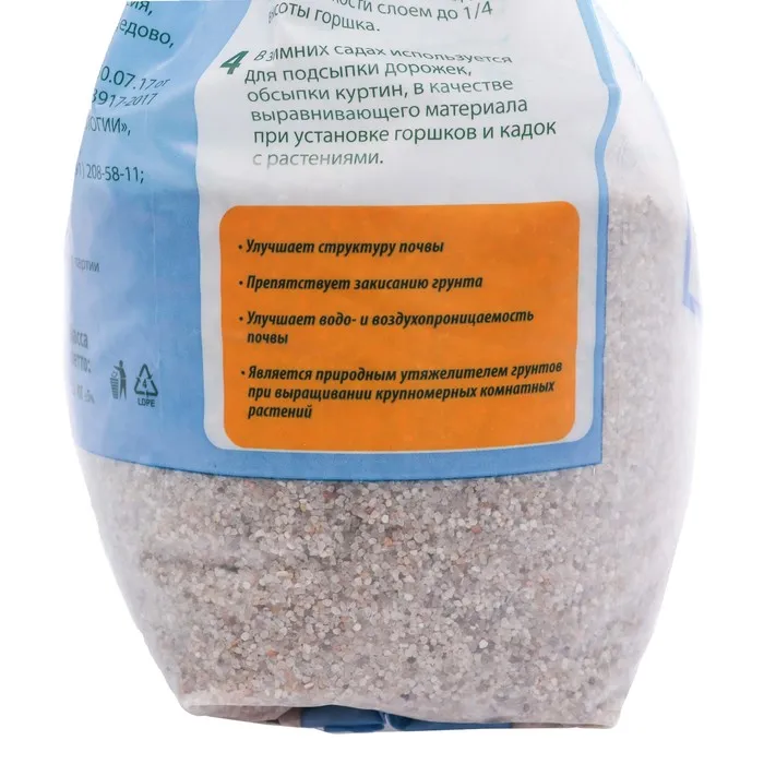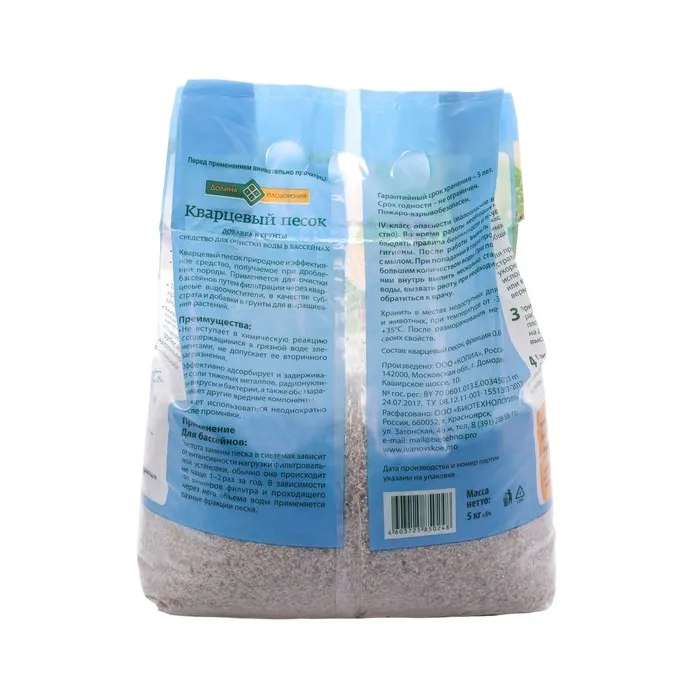 Песок кварцевый Долина Плодородия, фр. 0.8 - 2 мм, 5 кг — Характеристики