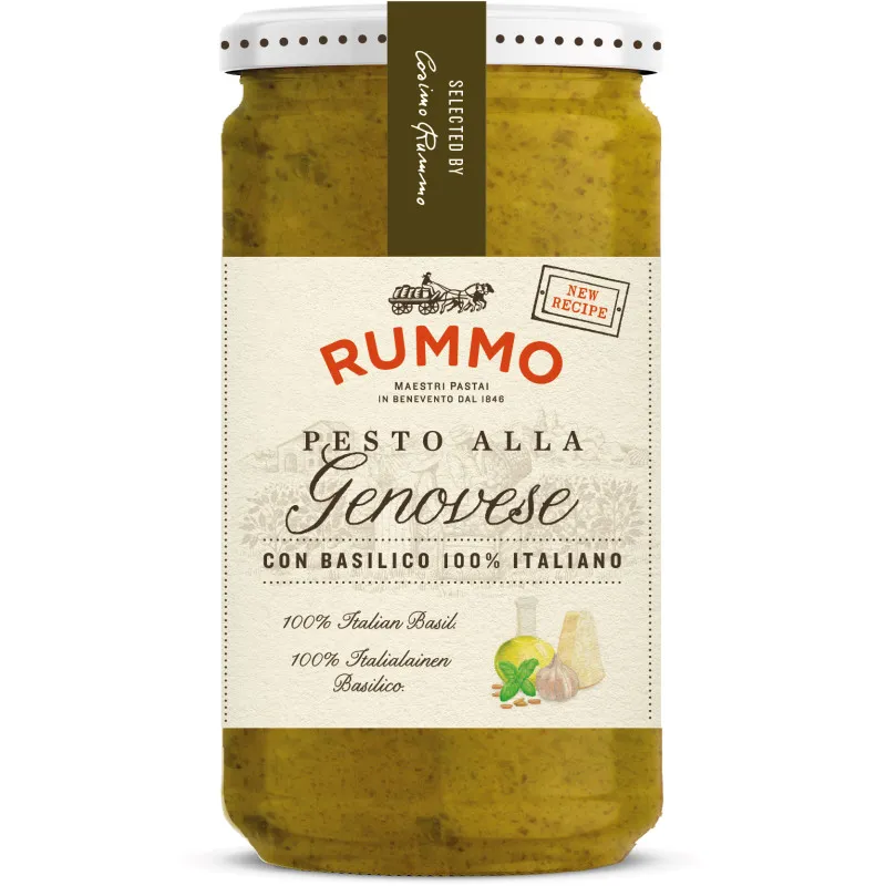 Rummo Pesto alla Genovese – это соус, который перенесет вас в солнечную Италию. Он содержит вкусный итальянский базилик, идеально подобранное количество чеснока, а также аутентичные сыры Grana Padano и Pecorino Romano из Италии. Этот песто станет великолепным дополнением к пасте или другим блюдам, придавая им настоящий итальянский вкус. Каждая банка содержит 190 г чистого удовольствия.