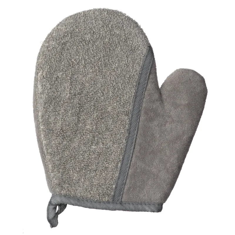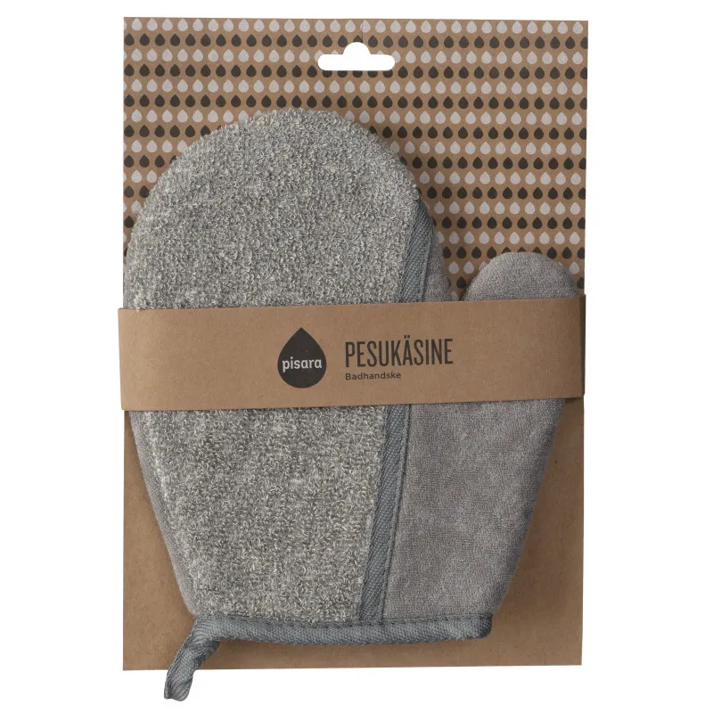 Перчатка Pisara обеспечивает деликатное очищение благодаря своей двухсторонней конструкции. Одна сторона выполнена из мягкого материала, напоминающего фроте, а другая — более грубая для более интенсивного мытья. Перчатка подходит для обеих рук.