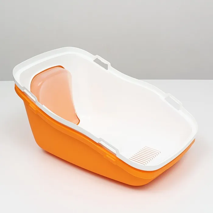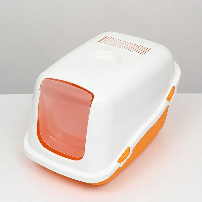 Pet-it домик-туалет для кошек - комфорт и стиль в одном. Просторные размеры 57x39x38 см, яркая цветовая гамма оранжевого и белого. Легко чистится, прочная конструкция. Воплощение комфорта и гигиены для вашего питомца.