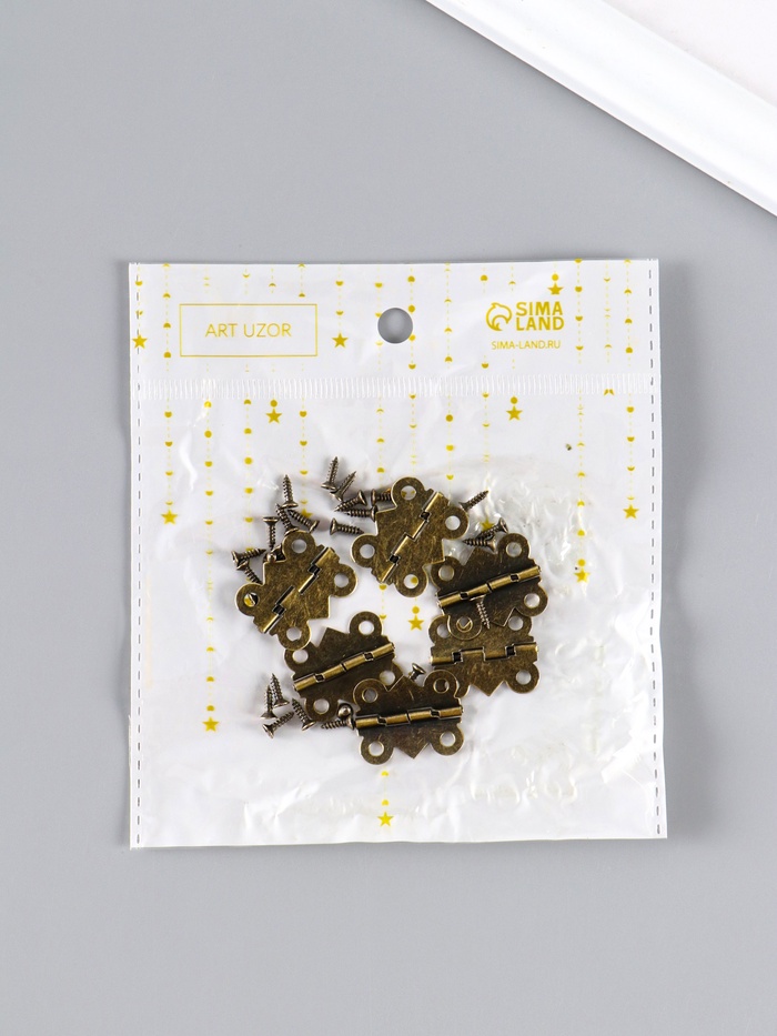 Петля для шкатулки (ключницы), металл, фигурная, под бронзу, набор 6 шт., 1.5×2.1 см — Характеристики