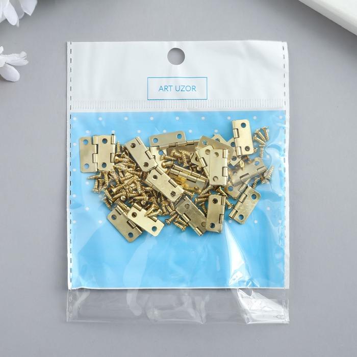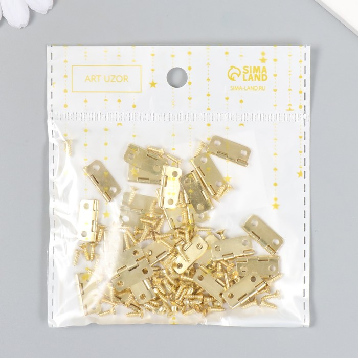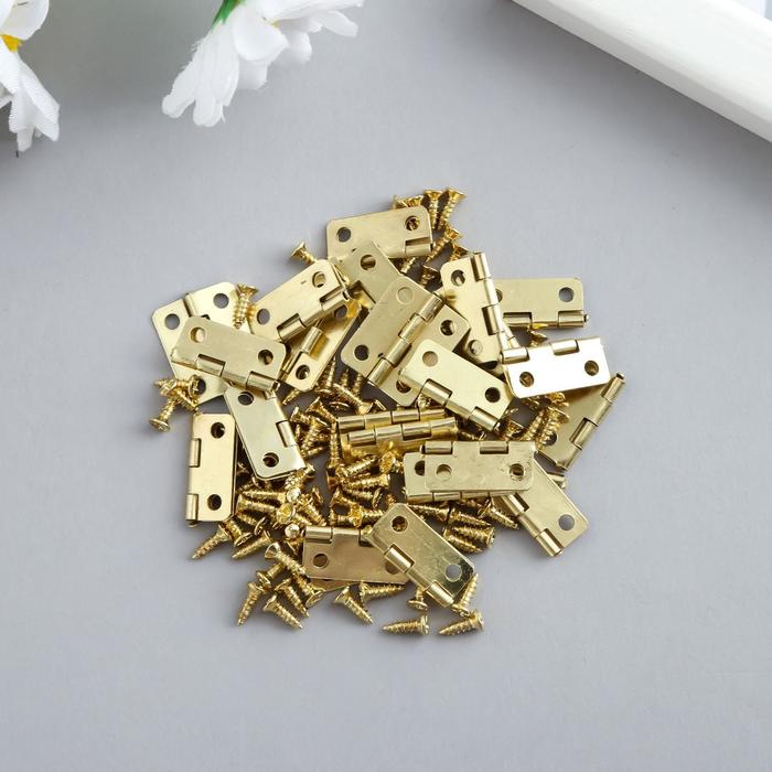 Петля для шкатулки металл с закругленными углами золото + саморезы набор 25 шт 1,6х1,3 см