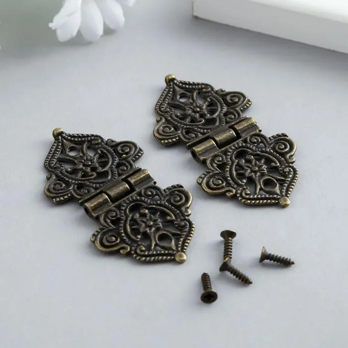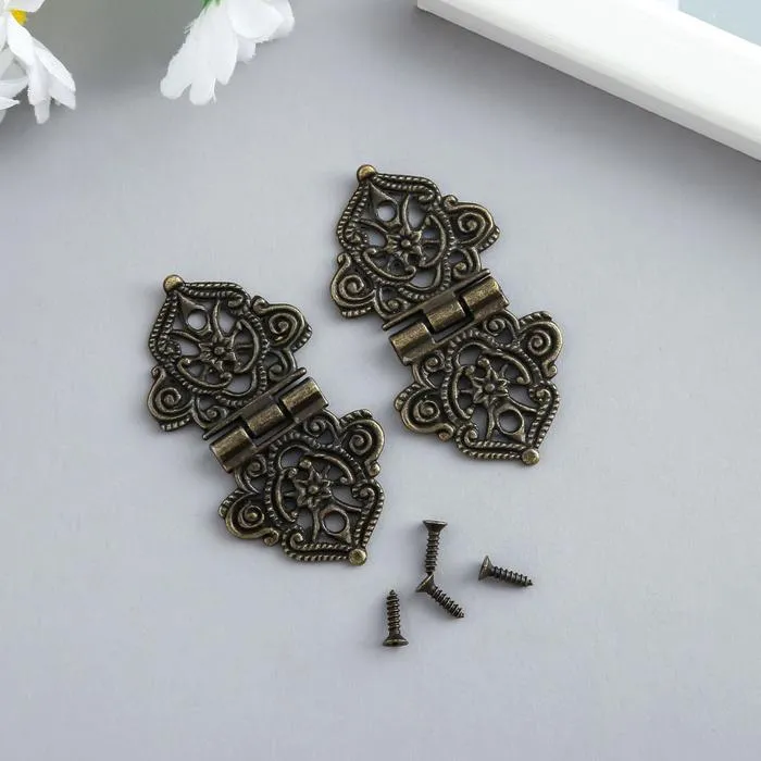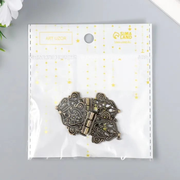 Петля для шкатулки с крепежом металл «Узорная с цветами», под бронзу, 5.3×2.8 см — Характеристики