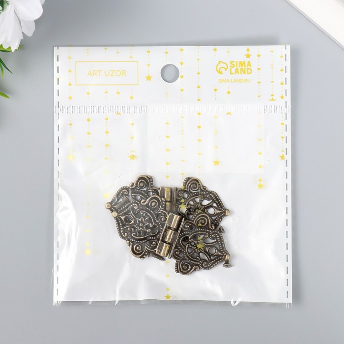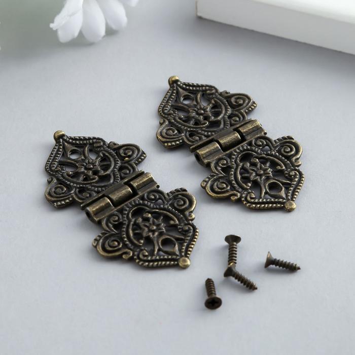 Петля для шкатулки с крепежом металл «Узорная с цветами», под бронзу, 5.3×2.8 см