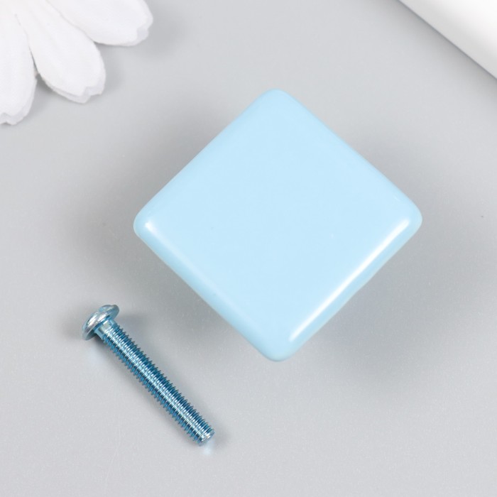Ручка для шкатулки керамика, металл "Квадратик" голубая 3,3х3,3х2,1 см