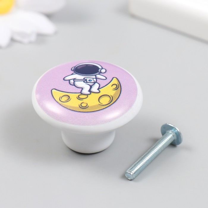 Фурнитура для шкатулки, ручка «Космонавт на месяце», керамика, металл, 3.8×3.8 см