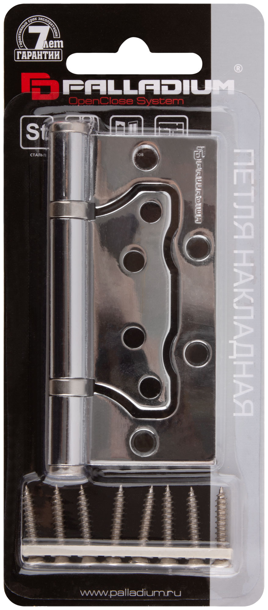Универсальная дверная петля 100 мм хром для установки без врезки