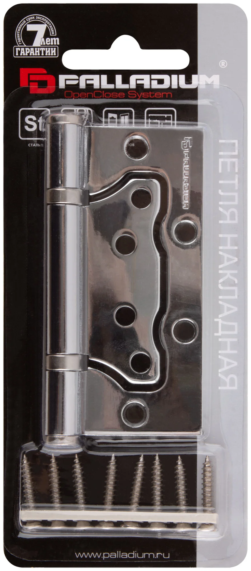 Петля Palladium 100 мм хром не только надежна, но и эстетично выглядит благодаря своему лаконичному дизайну. В комплект входит необходимый крепеж, что упрощает процесс монтажа и делает его доступным даже для новичков.