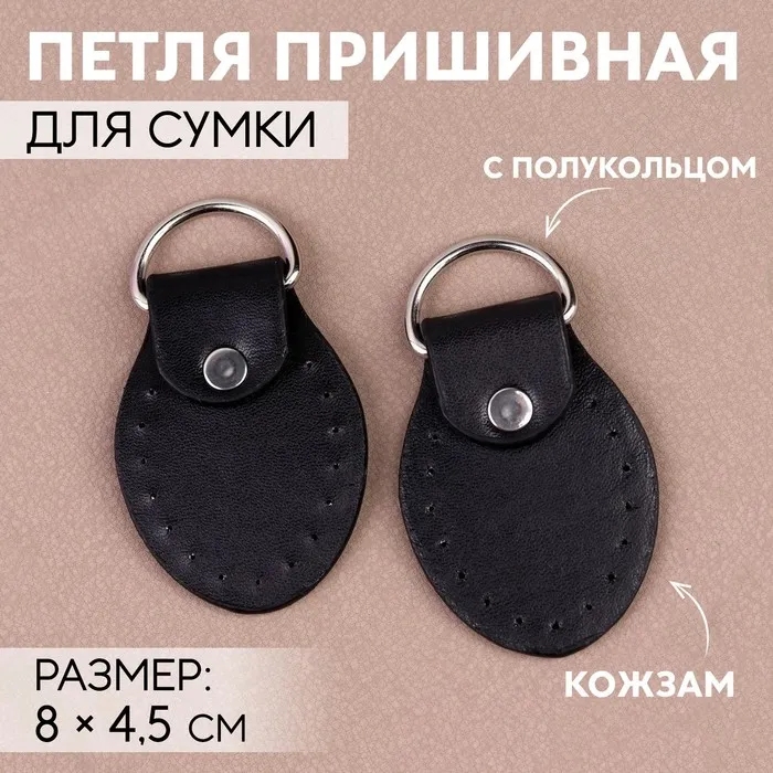 Петля пришивная для сумки, с полукольцом, пара, 8 × 4,5 см, цвет чёрный/серебряный — Характеристики