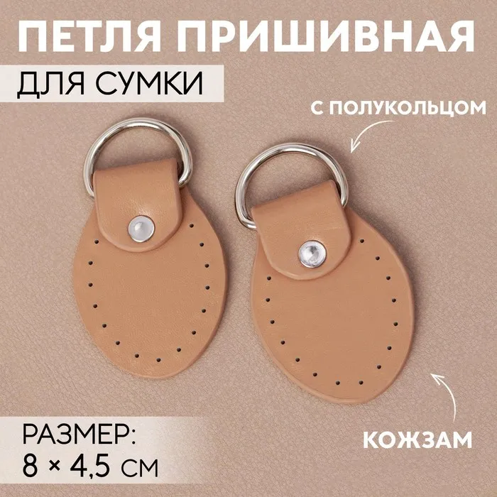 Петля пришивная для сумки, с полукольцом, пара, 8×4.5 см, цвет бежевый, серебряный — Характеристики